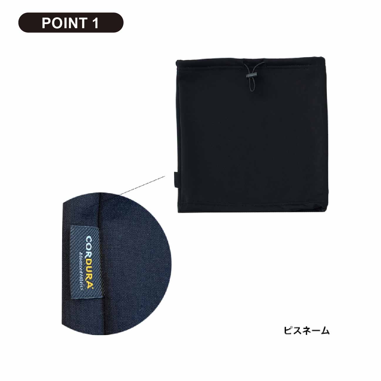 強度と耐久性に優れたコーデュラナイロンを使用。スタイリッシュなネックウォーマー。