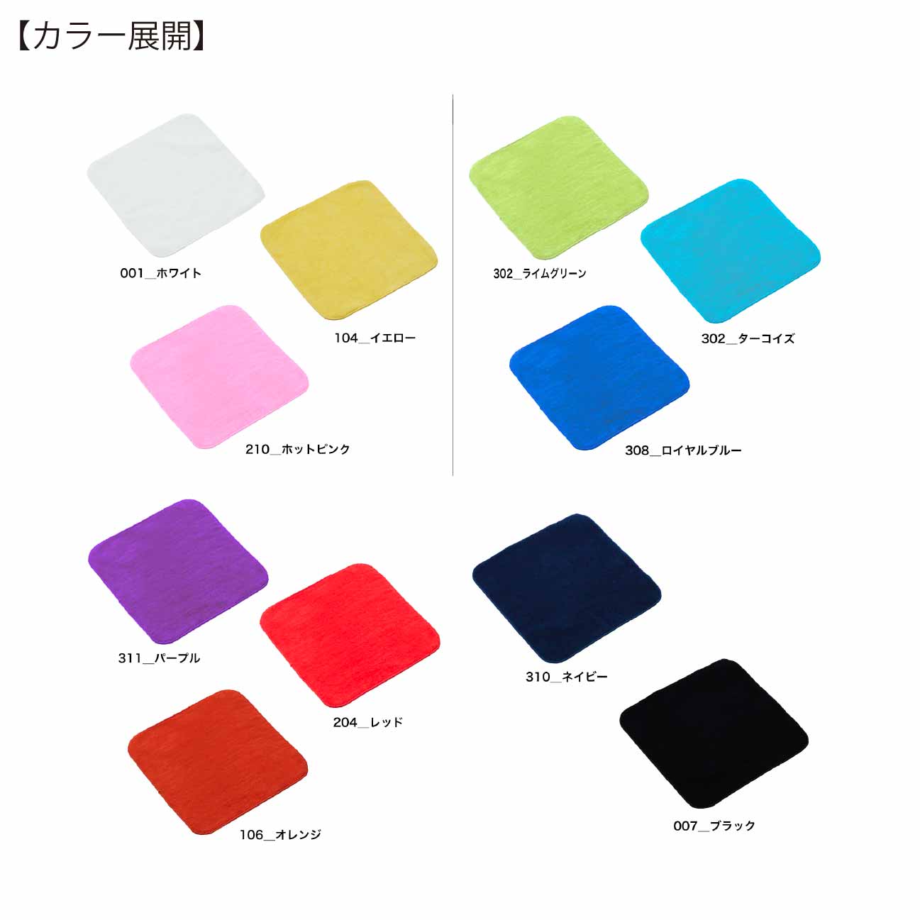 ホワイト/ブラック/ネイビー/イエロー/オレンジ/ホットピンク/レッド/パープル/ターコイズブルー/ロイヤルブルー/ライムグリーン