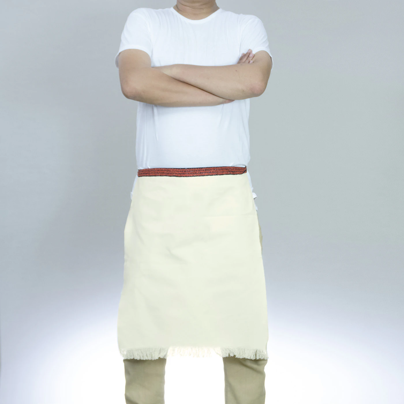 (染みや油汚れ等は濃色生地に比べ目立ちます。気になる場合は濃色生地の帆前掛けをご検討下さい。)