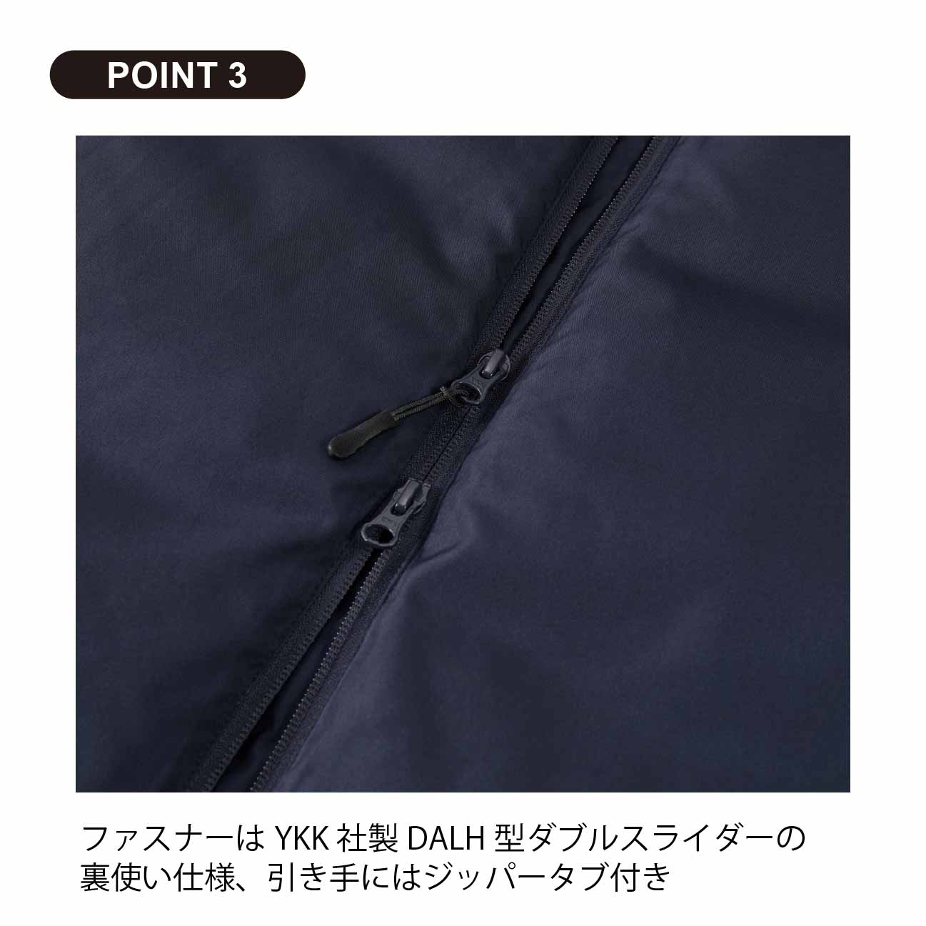 ※ファスナーはYKK社製 ダブルスライダー(フロントファスナーのみ)