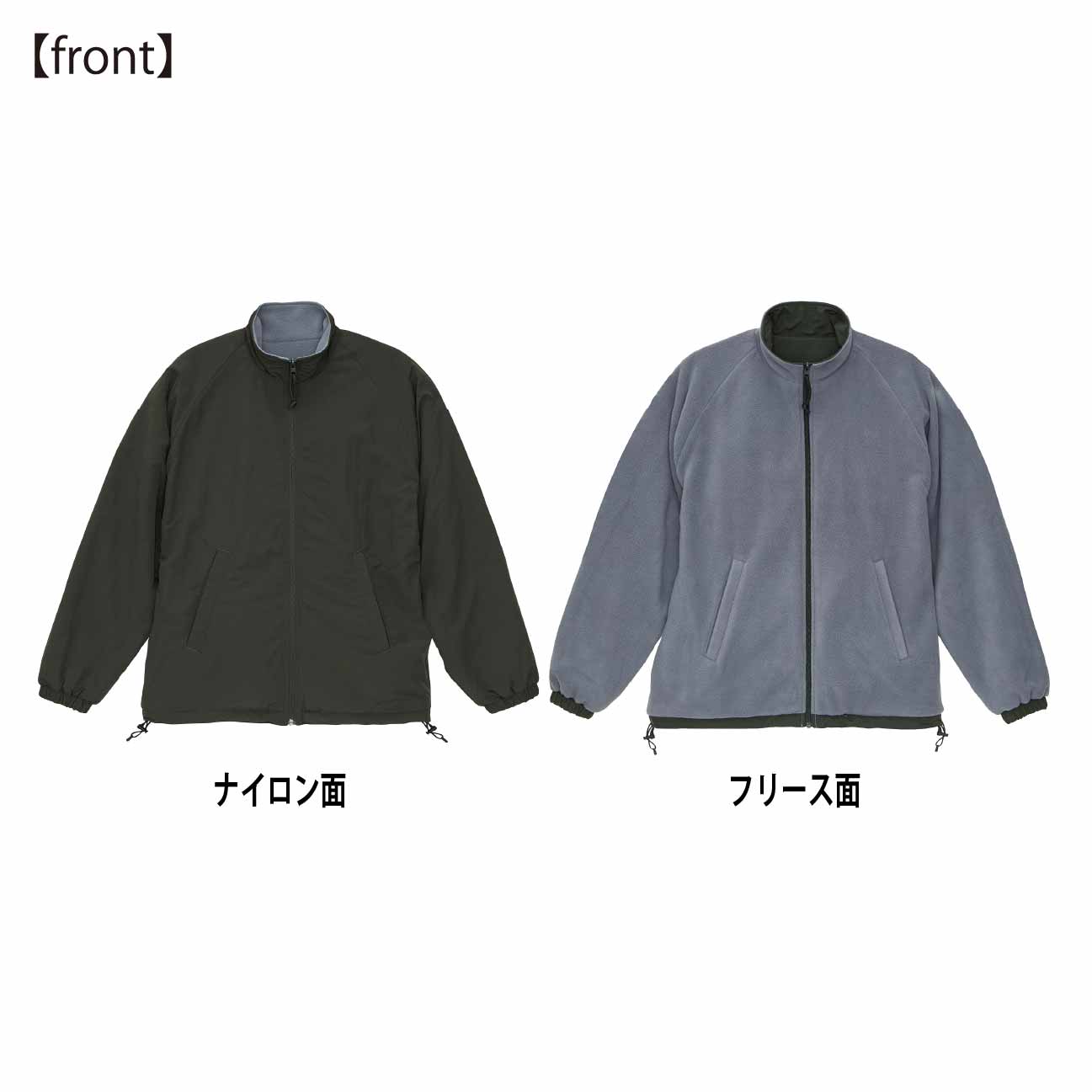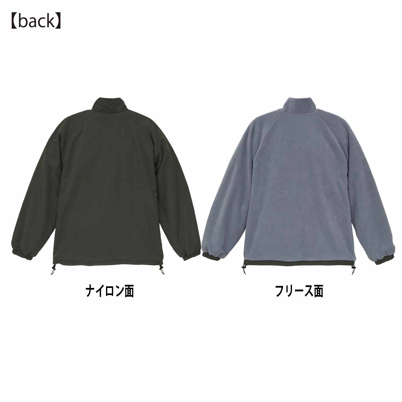 リバーシブル仕様で汎用性抜群のスタンドジャケット。ナイロン側を表にすればシンプルでスポーティーな雰囲気、フリース側を表にすれば、ゴープコアな雰囲気が楽しめる優れもの。どちらの面もゆったりとしたサイジングで着用できるラグラン仕様。フロントのジッパー部分は両面使えるYKK社製の回転オートマチックスライダーを採用し、目を引くパラコードの引き手がポイント。シャーリングの袖口は、フリースサイドで着たときに袖口からナイロン部分が覗いてアクセントになるように設計しています。また裾口にはドローコードを配し、お好みのシルエットに変えることも可能。気分に合わせて楽しめる、変幻自在のアウターです。